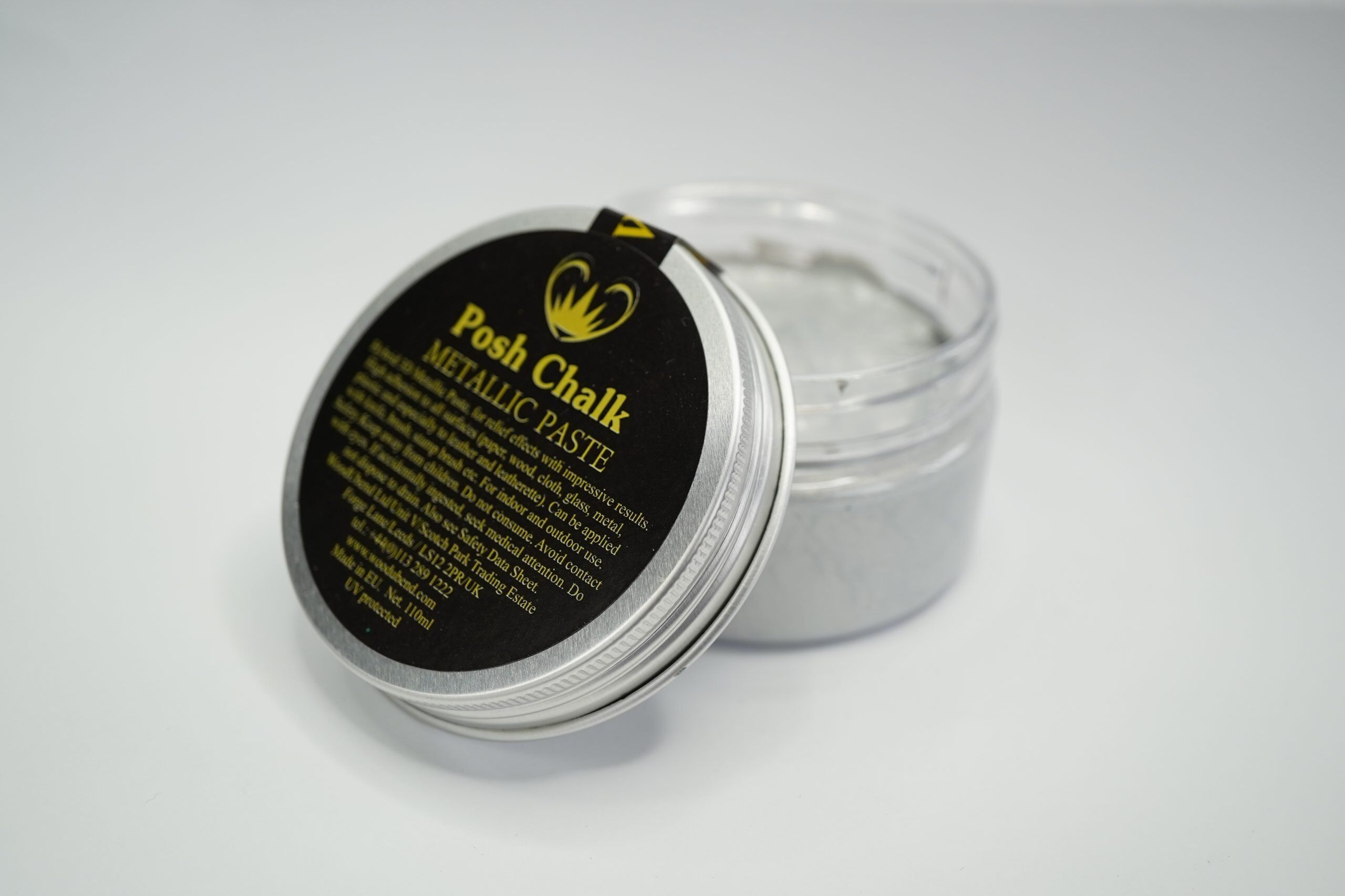 This thick Pearl Silver metallic paste is glossy and lustrous! Perfect for creating raised stencilling when combined with Posh Chalk Stencils. The paste is water based and scented with essential oils, meaning it smells as beautiful as it looks! It can be used as it comes or easily watered down into a wash. An all in one product which is suitable for indoor and outdoor use.