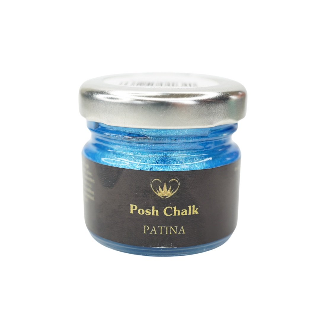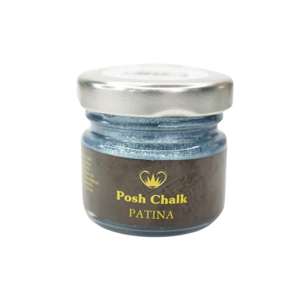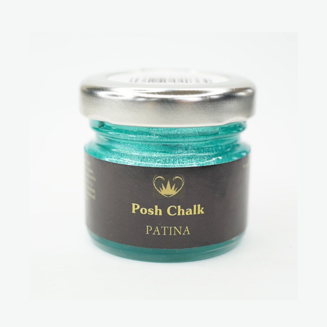 POSH CHALK PATINA GILDING WAX.METALLIC GILDING WAXES, GREAT FOR GIVING A PROJECT DEPTH AND A TOUCH OF GLAM, AND COMES IN 6 BEAUTIFUL SHADES. IN THE OIL-BASED PATINA AND 5 NEW SHADES WHICH ARE WATER-BASED. AQUA PATINAS