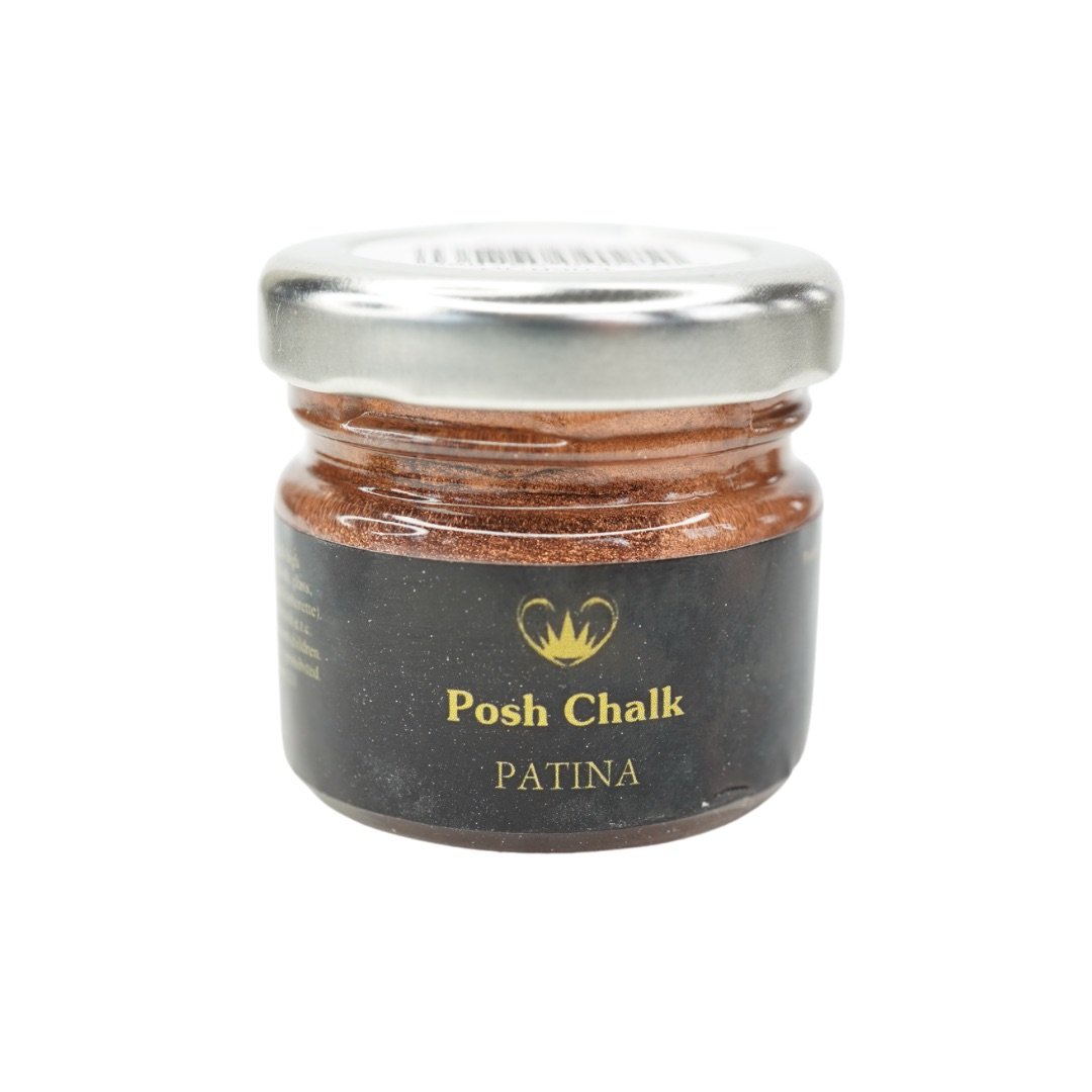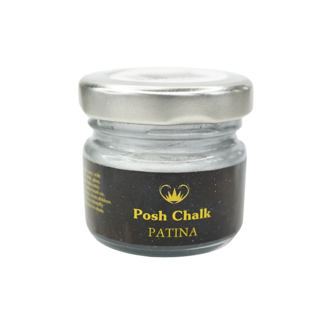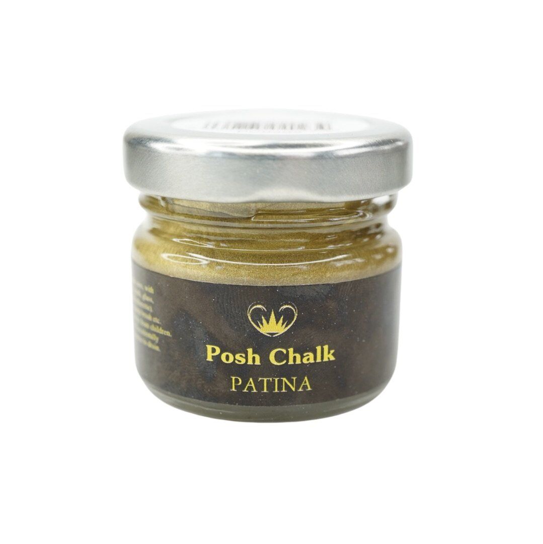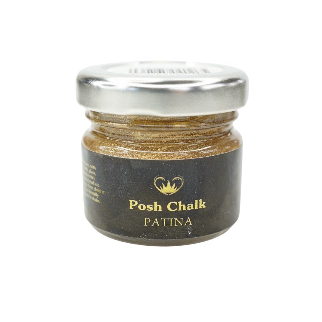 POSH CHALK PATINA GILDING WAX.METALLIC GILDING WAXES, GREAT FOR GIVING A PROJECT DEPTH AND A TOUCH OF GLAM, AND COMES IN 6 BEAUTIFUL SHADES. IN THE OIL-BASED PATINA AND 5 NEW SHADES WHICH ARE WATER-BASED. AQUA PATINAS