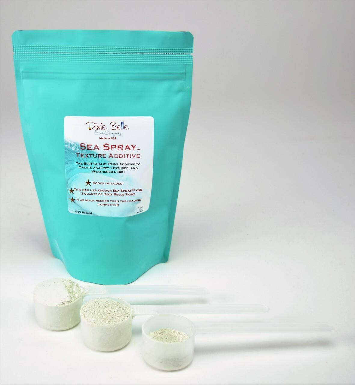 Mix two scoops of Sea Spray with 8 oz of the Dixie Belle Paint. If needed mix another 1/2 scoop until you achieve a thick, brownie batter-like consistency.
